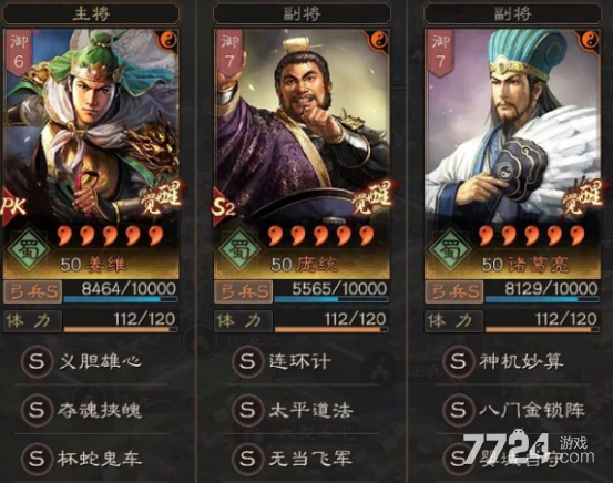 这套阵容也是目前版本比较强力的诸葛亮阵容,如果你们没有庞统的话,那么可以选择一个兵种适应性宝物,让赵云的兵种变成S,这样子可以作为弓兵来使用。