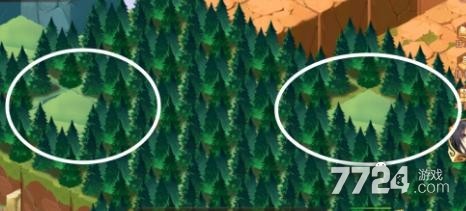 然后能看到大片树林,里面有四个空白位置,刚好每个对应一个箱子,也是能直接进去的,这样就剩下一个。
