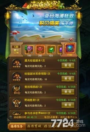 活动内容:夏日海滩狂欢,积贝领奖乐不停,包含各种珍稀道具的兑换以及贝壳免费兑换,可以快速提升战力,不容错过。